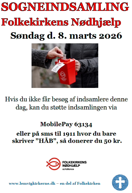 Ved søndagens gudtjeneste i vore to kirker er der mulighed for at give en gave til et bestemt formål. Der indsamles til et bestemt formål i hver måned. På enkelte udvalgte søndage indsamles til et bestemt formål. I Lemvig Kirke er der mulighed for at give en gave til vores venskabsmenighed i Cameroun. Dette i en dertil opsat indsamlingsbøsse.