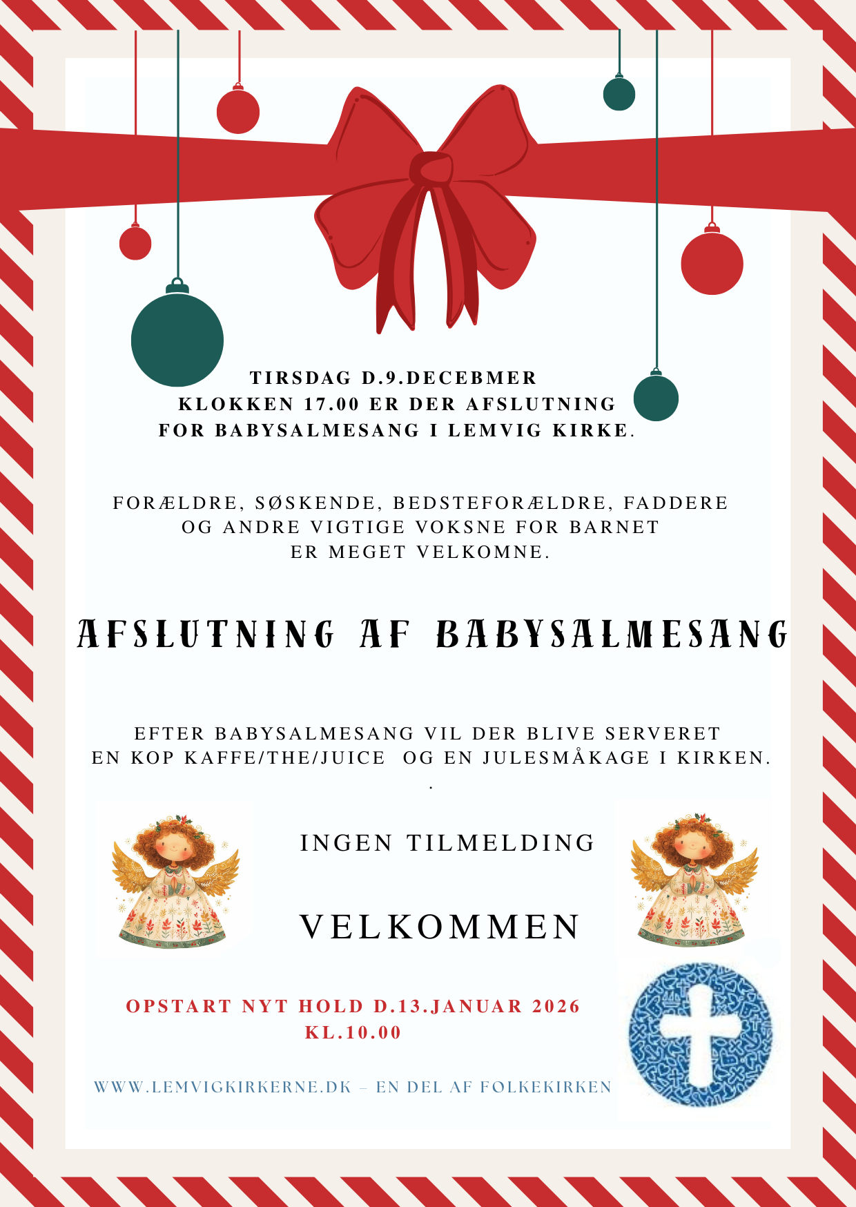 Afslutning tirsdag den 9. december 2025 kl. 17.00 i Lemvig Kirke med efterfølgende kaffe, the og snack - Alle er velkomne til afslutningen - ingen tilmelding