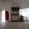 Gulvet i våbenhuset er nu næsten færdig, og højden på dørtrinet er sænket en smule.