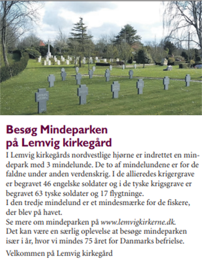 De to mindelunde for de faldne under anden verdenskrig - Allierede krigergrave og tyske krigsgrave - og mindesmærke for fiskere er nu sammenlagt til én mindepark med en samlende bund af græs beplantet med solitære træer.